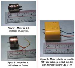 Dentro de la gran variedad de tipos existentes en el mercado, los más económicos son los que se utilizan en algunos juguetes, pero tienen el inconveniente de que su número de revoluciones por segundo (RPS) es muy elevado, lo que nos los hace muy apropiados para la construcción de un microbot que por ejemplo, siga una línea, si no se utilizan reductores adicionales o un sistema de regulación electrónico. Vea las figs. 1 y 2.