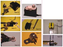 Para fijar esta estructura al chasis de nuestro microbot, tan sólo tendremos que conseguir unas escuadras con unos taladros o hacerlas nosotros mismos con un trozo de aluminio y la ayuda de un tornillo de banco. Si utilizamos cualquiera de los otros tipos de motores de corriente continua que se han mostrado la fijación al chasis puede ser más o menos compleja, nosotros te damos dos. Si el motor tiene una carcasa redonda, que es lo normal, se puede utilizar una grapa de las utilizadas para fijar el tubo de las instalaciones eléctricas de superficie, tal y como se muestra en la foto de la figura 17. Otra opción por ejemplo es utilizar bridas de plástico, también conocidas como conectores unex para la fijación de los motores al chasis del microbot.